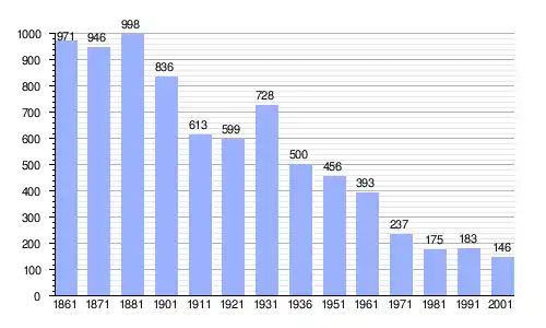 Gráfica de evolución demográfica de San Paolo Cervo entre 1861 y 2001 |