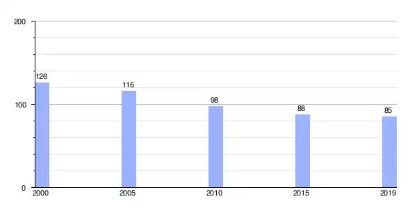 Gráfica de evolución demográfica de Rubián entre 2000 y 2019 |