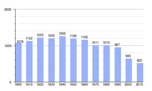 El carácter rural del municipio y su aislamiento ha favorecido el descenso de la población que se inició en los años 40 y que ha sido constante desde entonces hasta alcanzar cifras bajas en la actualidad.
