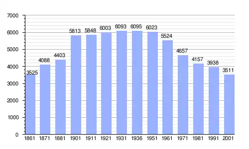 Gráfica de evolución demográfica de San Piero Patti entre 1861 y 2001 |