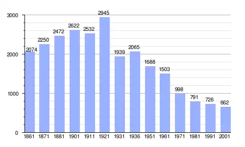 Gráfica de evolución demográfica de San Pietro Avellana entre 1861 y 2001 |