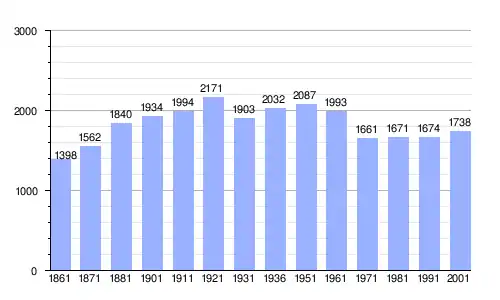 Gráfica de evolución demográfica de San Pietro Mosezzo entre 1861 y 2001 |