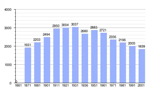 Gráfica de evolución demográfica de San Pietro di Cadore entre 1861 y 2001 |
