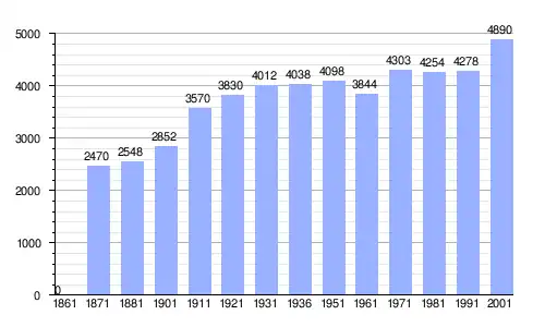 Gráfica de evolución demográfica de San Pietro di Feletto entre 1861 y 2001 |