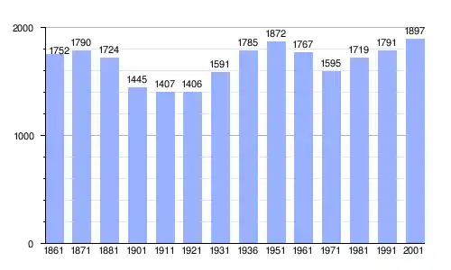 Gráfica de evolución demográfica de San Potito Sannitico entre 1861 y 2001 |
