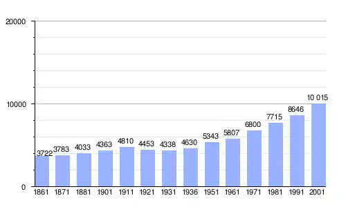 Gráfica de evolución demográfica de San Prisco entre 1861 y 2001 |