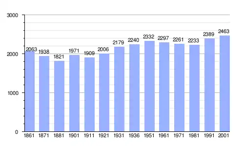 Gráfica de evolución demográfica de San Quirico d'Orcia entre 1861 y 2001 |