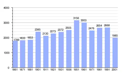 Gráfica de evolución demográfica de San Roberto entre 1861 y 2001 |