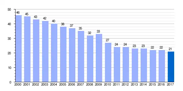Gráfica de evolución demográfica de San Román de Campezo[2] entre 2000 y 2017 |
