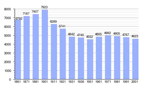 Gráfica de evolución demográfica de San Salvatore Monferrato entre 1861 y 2001 |