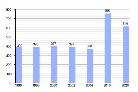 Gráfica de evolución demográfica de San Silvestre de Guzmán entre 1996 y 2020 |