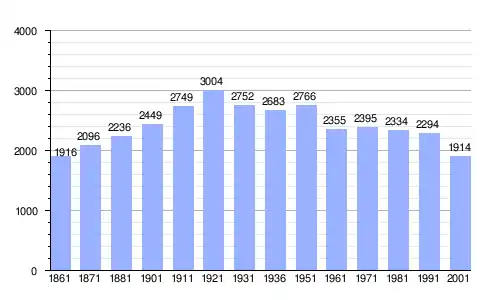 Gráfica de evolución demográfica de San Sossio Baronia entre 1861 y 2001 |