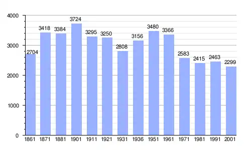 Gráfica de evolución demográfica de San Sosti entre 1861 y 2001 |