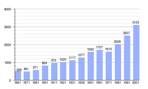 Gráfica de evolución demográfica de San Teodoro entre 1861 y 2001