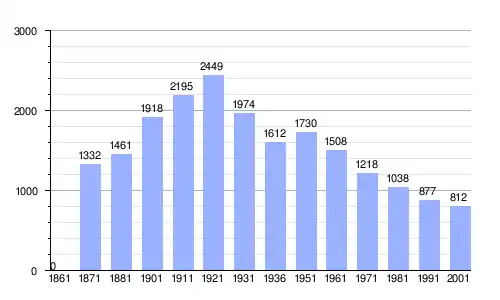 Gráfica de evolución demográfica de San Tomaso Agordino entre 1861 y 2001 |