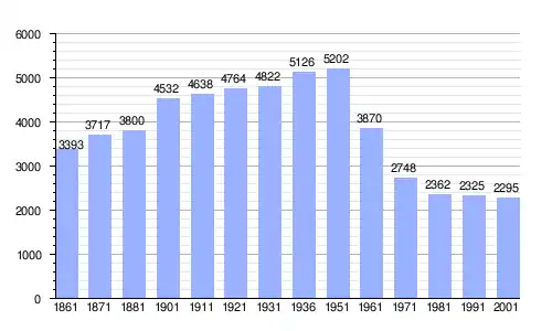 Gráfica de evolución demográfica de San Venanzo entre 1861 y 2001 |