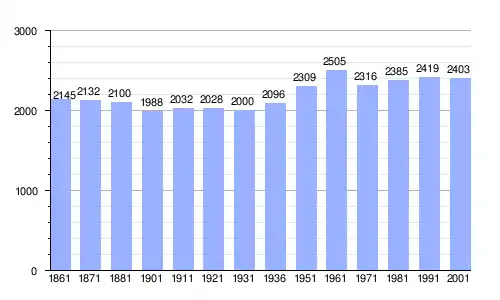 Gráfica de evolución demográfica de San Vero Milis entre 1861 y 2001 |