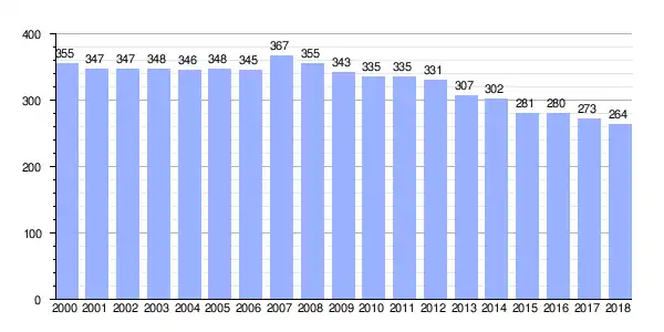 Gráfica de evolución demográfica de San Vicente entre 2000 y 2018 |