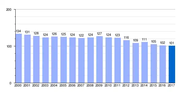 Gráfica de evolución demográfica de San Vicente de Arana[2] entre 2000 y 2017 |