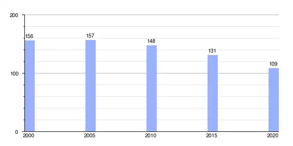 Gráfica de evolución demográfica de Gondrame entre 2000 y 2020 |