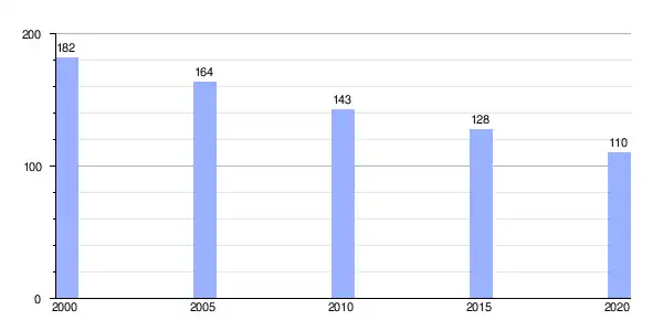 Gráfica de evolución demográfica de Paradela entre 2000 y 2020 |