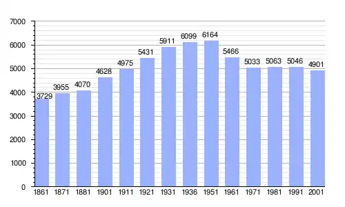 Gráfica de evolución demográfica de San Vito Chietino entre 1861 y 2001 |