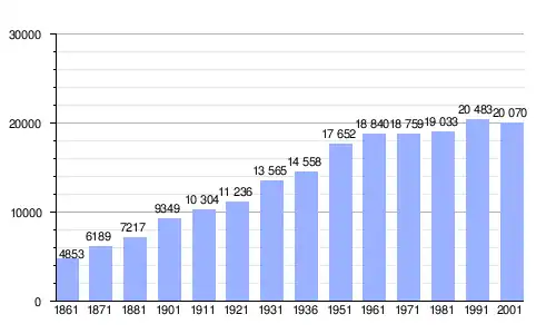 Gráfica de evolución demográfica de San Vito dei Normanni entre 1861 y 2001 |