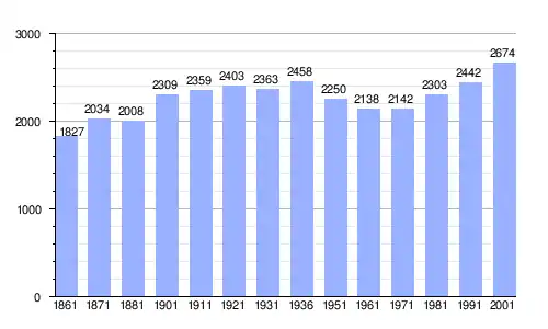 Gráfica de evolución demográfica de San Vittore del Lazio entre 1861 y 2001 |