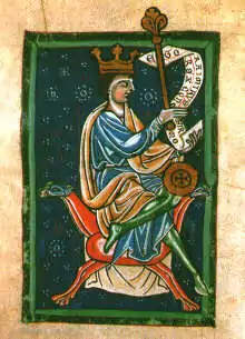 Miniatura medieval que representa al rey Ramiro III de León, esposo de la reina Sancha Gómez.