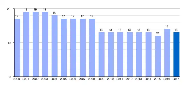 Gráfica de evolución demográfica de Sanchogómez[2] entre 2000 y 2017 |