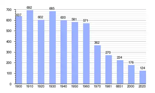 Gráfica de evolución demográfica de Sando entre 1900 y 2020 |