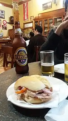 - Sánguche de asado, hecho con lonchas de redondo de ternera asado en su jugo