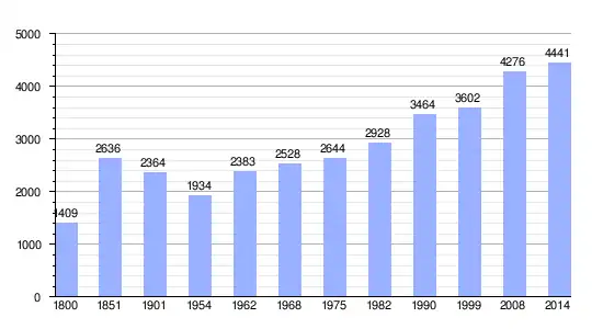 Los datos entre 1800 y 2013 son el resultado de sumar los parciales de las tres comunas que forman la nueva comuna de Sanilhac, cuyos datos se han cogido de 1800 a 1999, para las comunas de Breuilh,[4] Marsaneix[5] y Notre-Dame-de-Sanilhac[6] de la página francesa EHESS/Cassini. Los demás datos se han cogido de la página del INSEE.[7]
