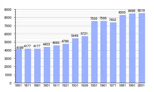 Gráfica de evolución demográfica de Sanluri entre 1861 y 2001 |