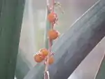 El ovario es trilocular, con los lóculos uniovulados. El estilo es filiforme y el estigma capitado. El fruto es una baya.[6]
