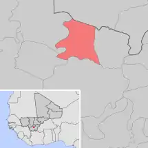Se encuentra ubicada al suroeste del país y al oeste de la región de Sikasso, a poca distancia del río Níger, de la frontera con República de Guinea y Costa de Marfil y al sur de la capital nacional, Bamako.