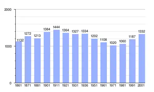 Gráfica de evolución demográfica de Sant'Agapito entre 1861 y 2001 |