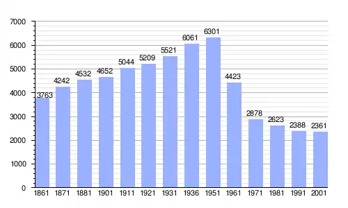 Gráfica de evolución demográfica de Sant'Agata Feltria entre 1861 y 2001 |