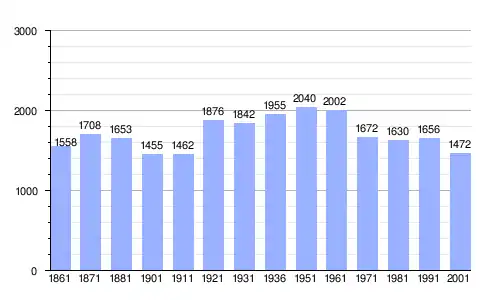 Gráfica de evolución demográfica de Sant'Angelo Le Fratte entre 1861 y 2001 |