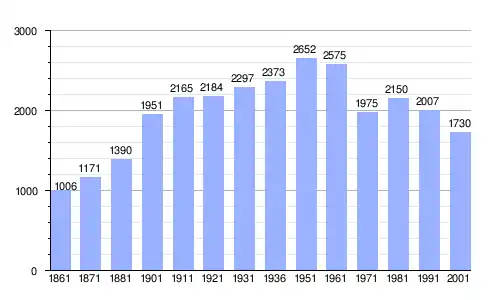 Gráfica de evolución demográfica de Sant'Angelo Muxaro entre 1861 y 2001 |