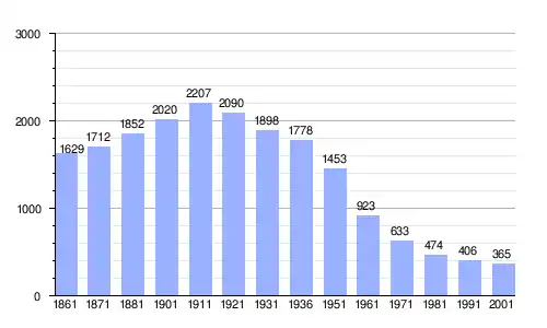Gráfica de evolución demográfica de Sant'Eufemia a Maiella entre 1861 y 2001 |