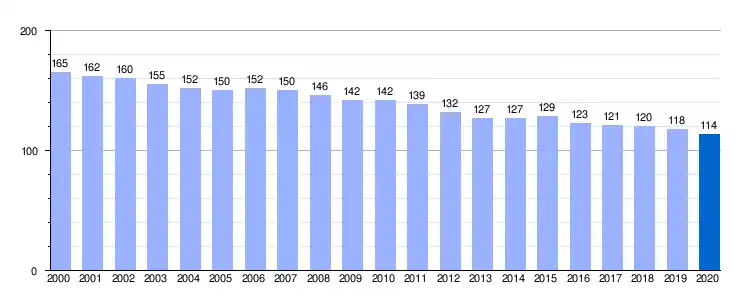 244 | 277 | 334 | 368 | 292 | 350 | 285 | 217 | 194 | 166 |