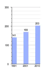 Gráfica de evolución demográfica de Santa Coloma entre 1991 y 2010 |