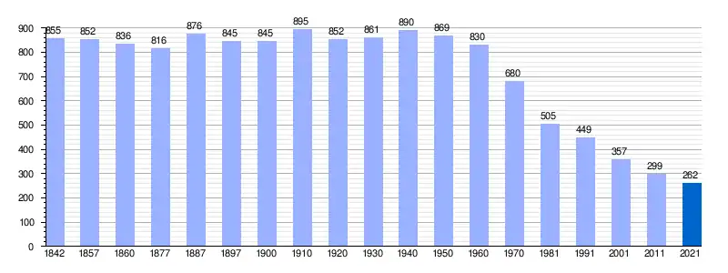Gráfica de evolución demográfica de Santa Cristina de Valmadrigal[4] entre 1842 y 2021 |
