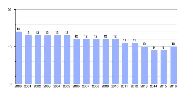 Gráfica de evolución demográfica de Santa Cristina del Páramo[2] entre 2000 y 2016 |