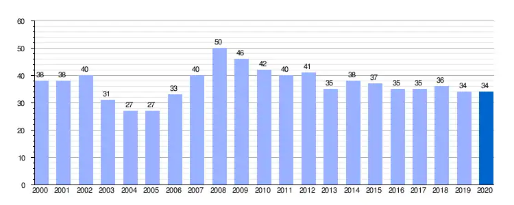 Gráfica de evolución demográfica de Santa Cruz de Boedo entre 2000 y 2020 |