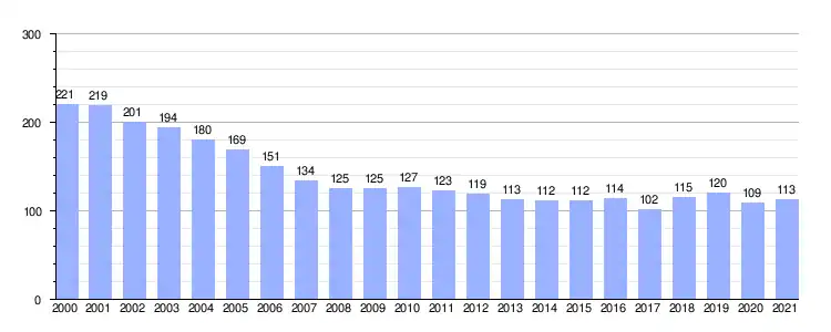 Gráfica de evolución demográfica de Santa Cruz de Montes entre 2000 y 2021 |