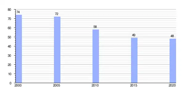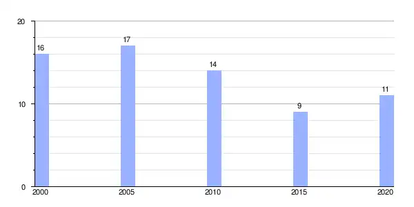 Gráfica de evolución demográfica de Retorta (aldea) entre 2000 y 2020 |