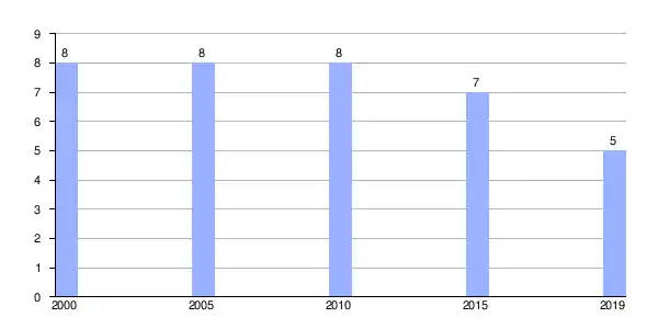 Gráfica de evolución demográfica de Viana (aldea) entre 2000 y 2019 |