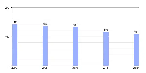 Gráfica de evolución demográfica de Asma entre 2000 y 2019 |